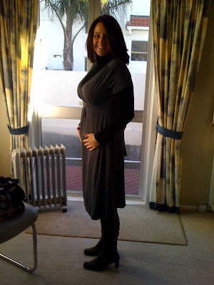 And just to make you all smile I had Sam take a picture of me in my new maternity clothes my mom sent. I was trying so hard to wear them and while they fit to a point please notice how long the dress is in the front...I guess I need that tummy to start sticking out to make it fit right. :)